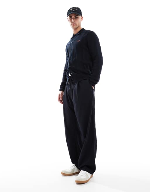 Fred Perry long sleeve knitted button through shirt in navy