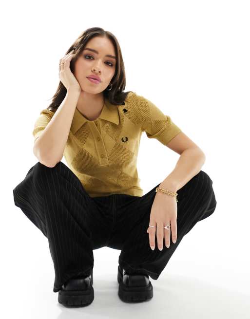 Fred Perry x Amy Winehouse argyle knitted shirt in gold