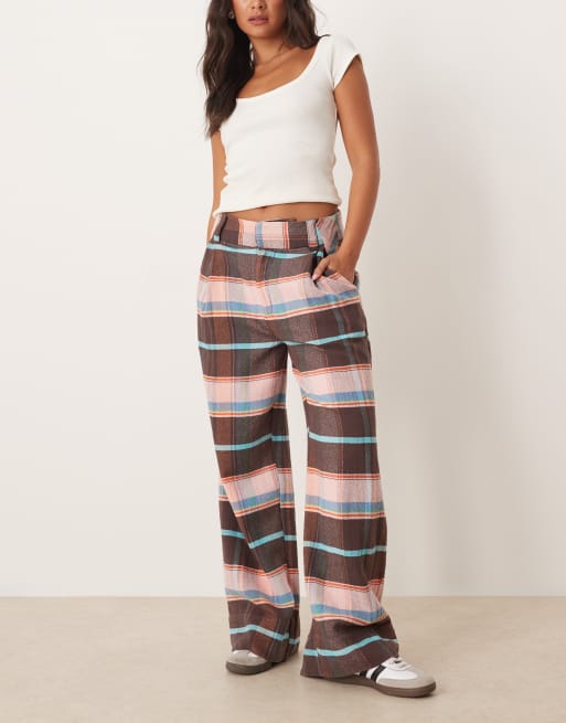 Free People buckle back plaid pants in brown combo