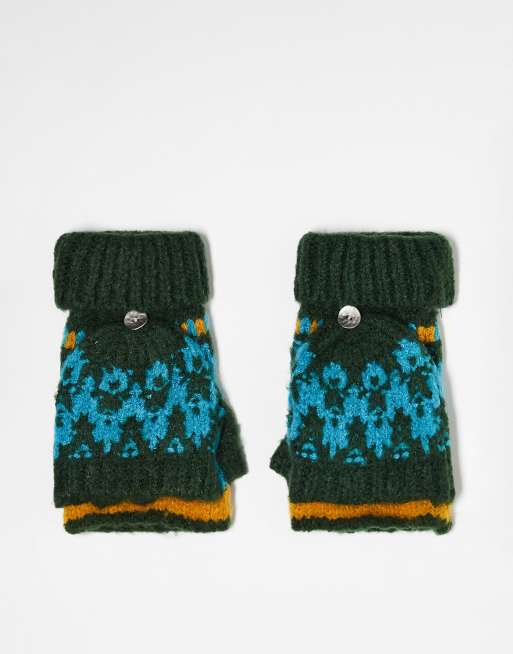 Free People fluffy fair isle pop-top mittens in green