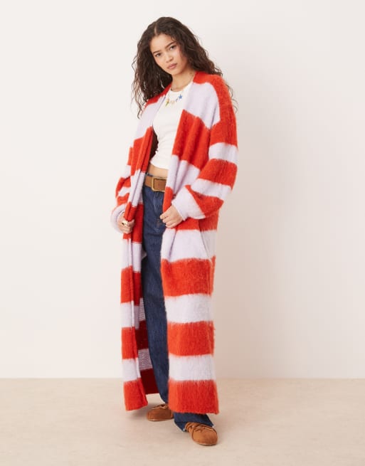 Free People fluffy longline oversized cardigan in red and lilac