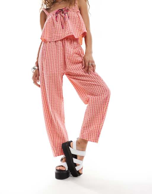 Free People gingham slouchy pants in pink