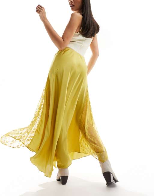 Free People lace insert maxi skirt in golden yellow