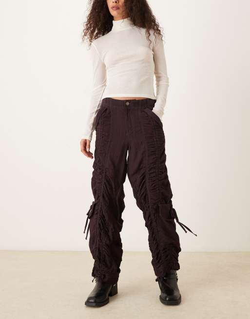 Free People Scorpio shirred pants in black coffee