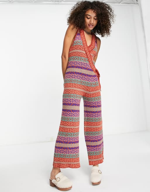 Free People Snowfall knitted wrap jumpsuit in multi