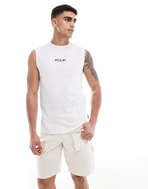 French Connection FCUK sleeveless singlet in white with black logo