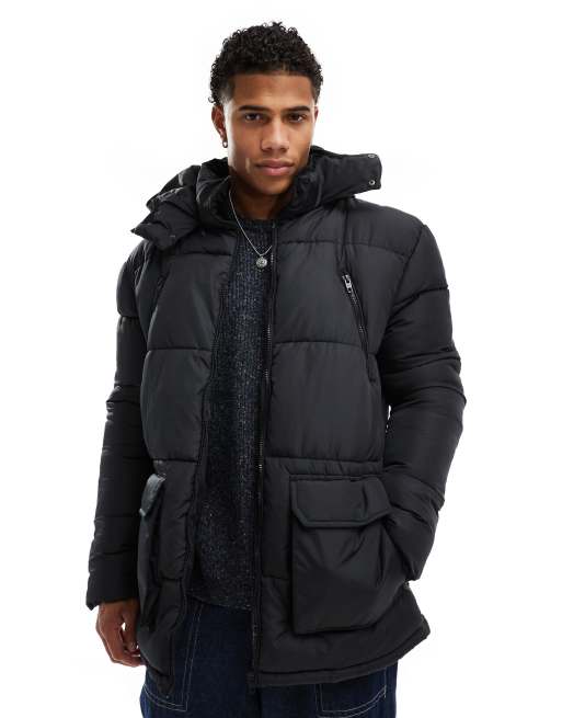 French Connection puffer jacket with hood and pockets in black