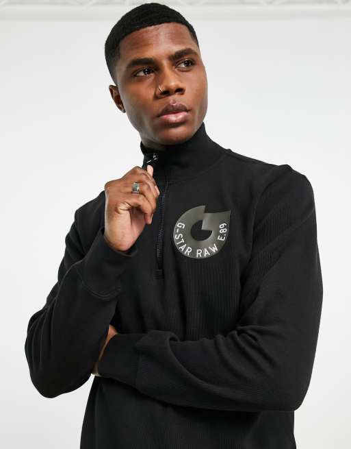 G-Star circle logo half zip sweat in black