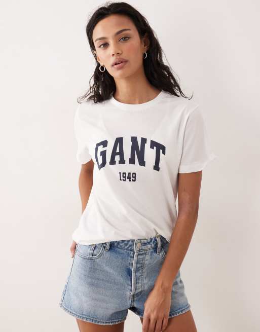 GANT collegiate chest logo fitted t-shirt in eggshell white