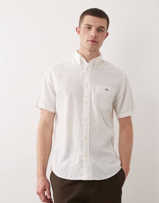 GANT shield logo short sleeve linen cotton shirt in white