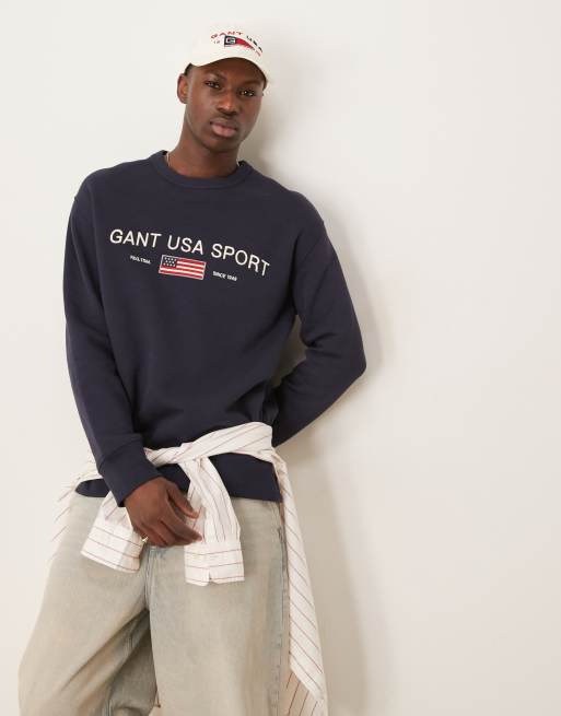 GANT USA Sport embroidered logo relaxed fit sweatshirt in navy