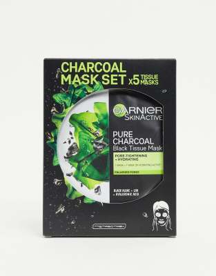 Garnier Charcoal and Algae Purifying and Hydrating Face Sheet Mask for Enlarged Pores (5 Pack)