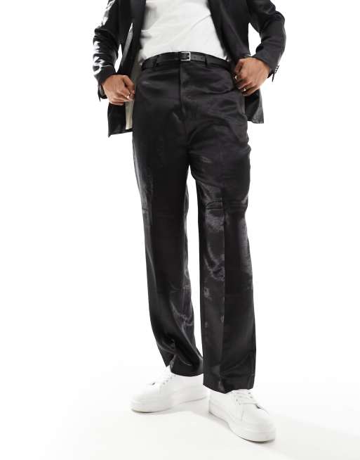 Gianni Feraud black satin wide leg suit pants