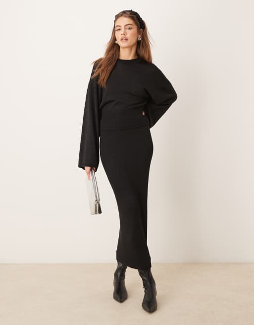 Gina Tricot metallic fine knit maxi skirt in black (part of a set)