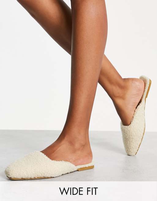 Glamorous Wide Fit mule house slippers in oatmilk