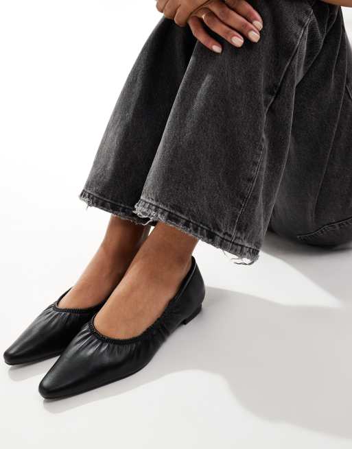 Glamorous Wide Fit ruched pointed toe ballet flats in black