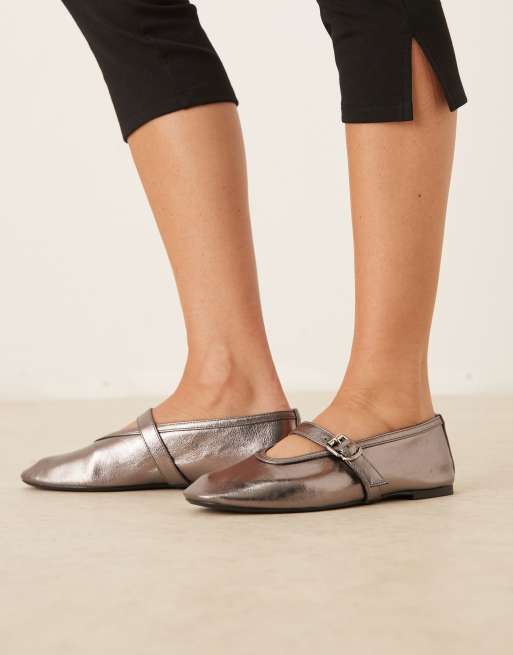 Glamorous ballet flats with buckle strap in bronze