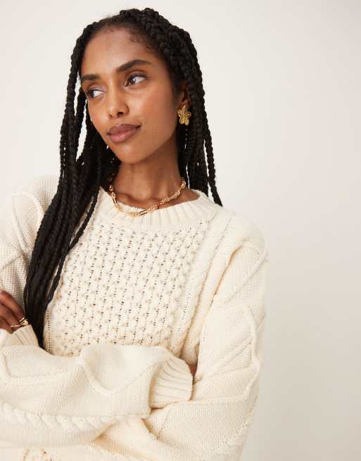 Glamorous cable knit oversized jumper in off white