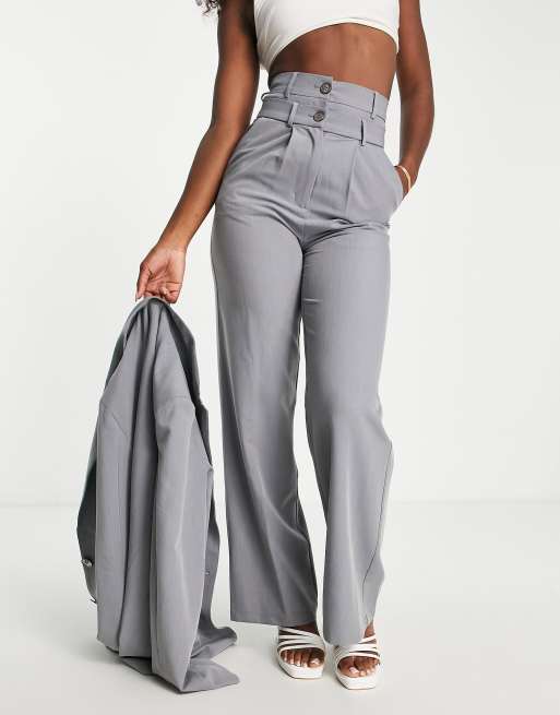 Glamorous double waist wide leg tailored pants in icy grey (part of a set)