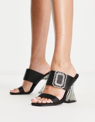Glamorous flare heel sandals with embellished detail in black