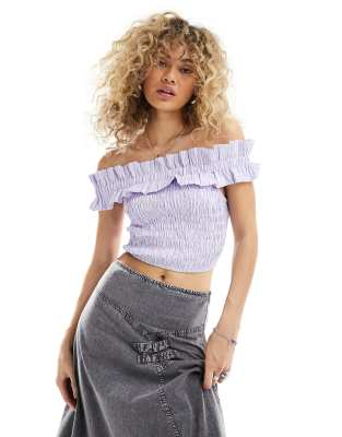 Glamorous off shoulder shirred crop top in purple stripe (part of a set)