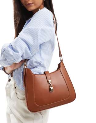 Glamorous shoulder bag with gold clasp detail in tan
