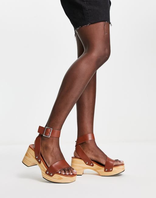 Glamorous summer clog sandals in tan