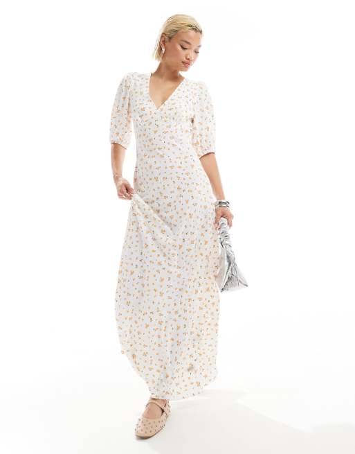 Glamorous v-neck ditsy print midi dress in white and orange