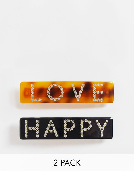 Glamorous x2 multipack diamante hair clips in black and tortoiseshell