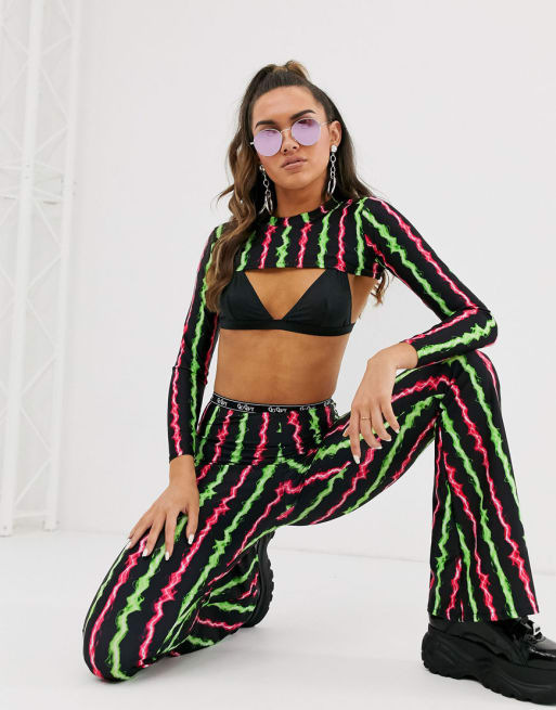GOGUY super crop top & high waist flare co-ord in electric neon print