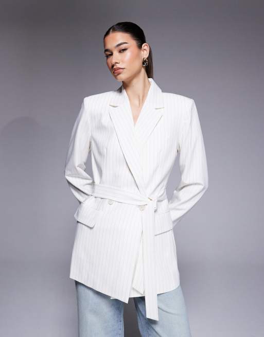 Good american essential suiting belted blazer in cream pinstripe (pat of a set)