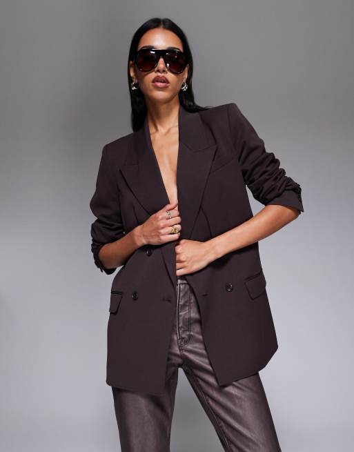 Good American Essential Suiting oversized double-breasted blazer in chocolate