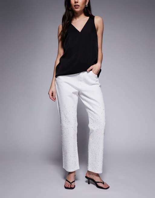 Good American Good Icon straight cropped pearl jeans in white (part of a set)