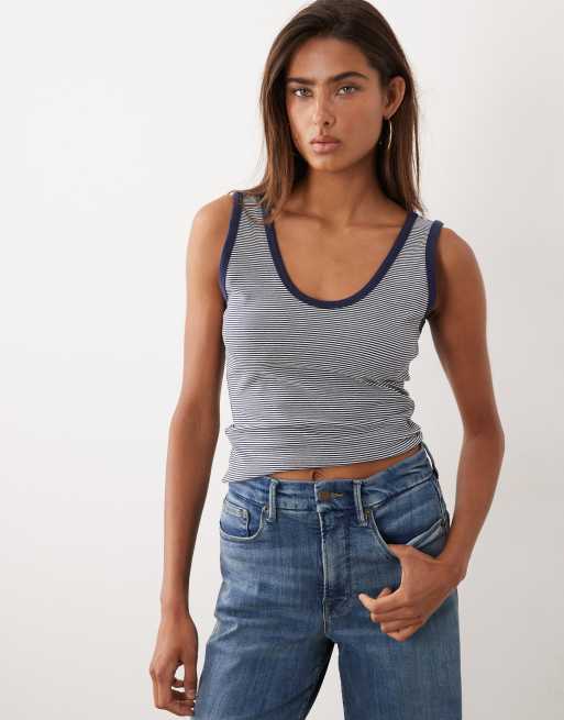 Good American super stretch ringer tank top in navy stripe