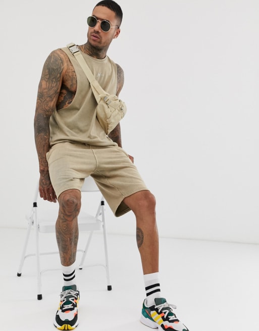 Good For Nothing co-ord in acid wash stone with script logo