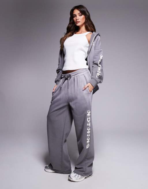Good For Nothing motif panel detail relaxed straight leg trackies in charcoal (part of a set)