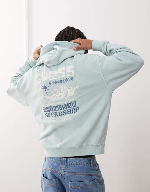 Guess Originals pullover hoodie in washed green with motorbar print