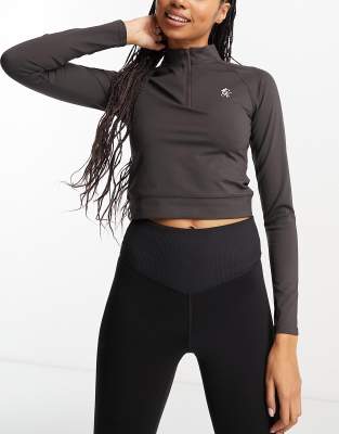 Gym King 365 1/4 zip crop long sleeve top in brown