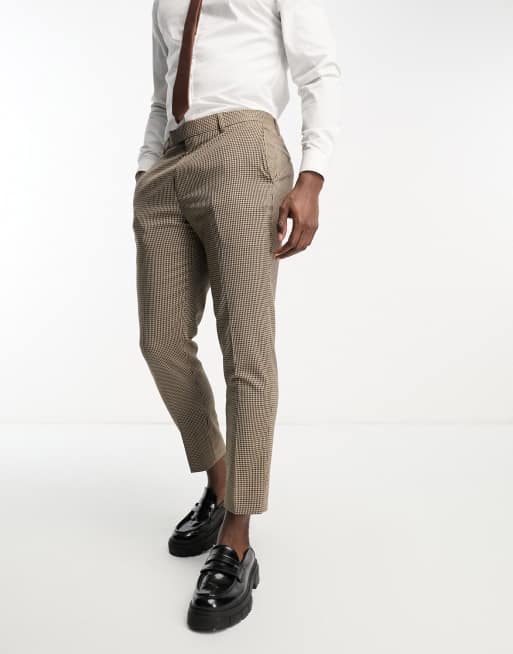 Harry Brown skinny fit cropped suit pants in brown micro check
