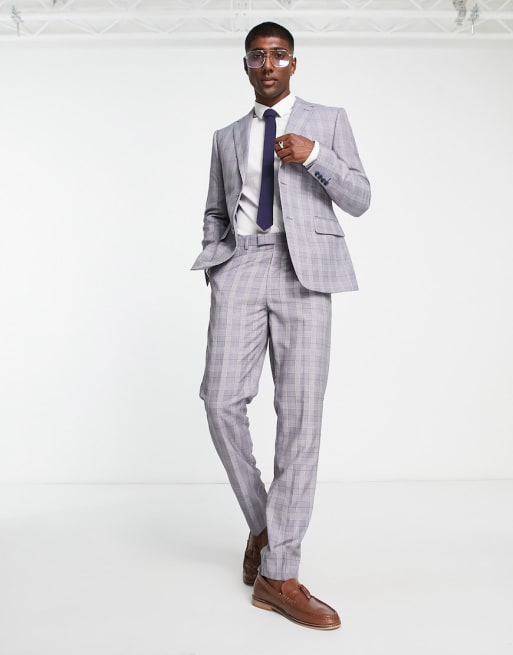 Harry Brown skinny fit suit in blue & orange check