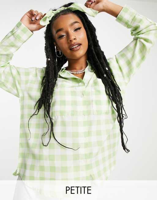 Heartbreak Petite oversized shirt with matching bandana in green gingham (part of a set)
