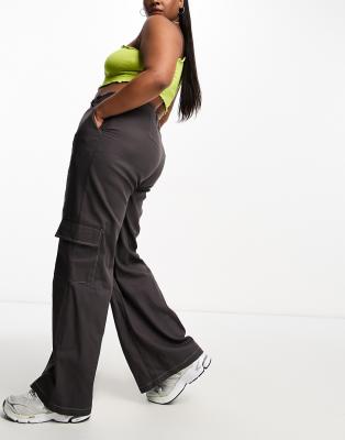 Heartbreak Plus wide leg cargo pants with contrast stitch in charcoal