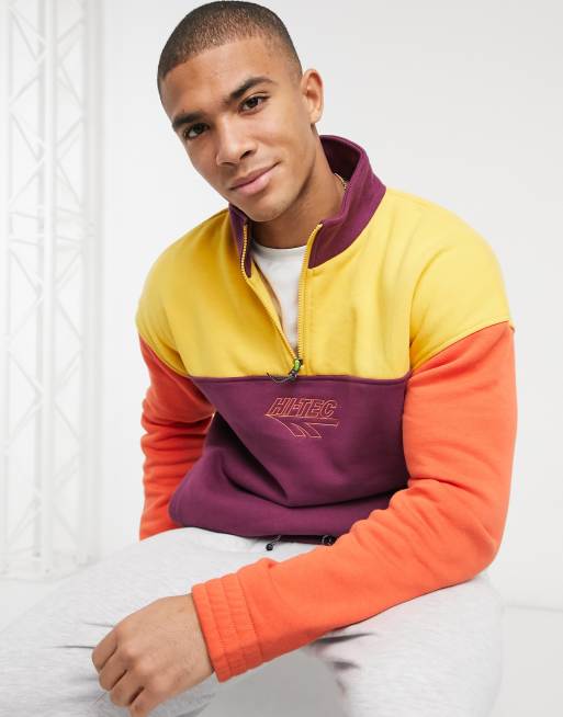 Hi-Tec half-zip pullover sweatshirt in purple and yellow