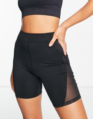 HIIT booty shorts with mesh cut outs in black