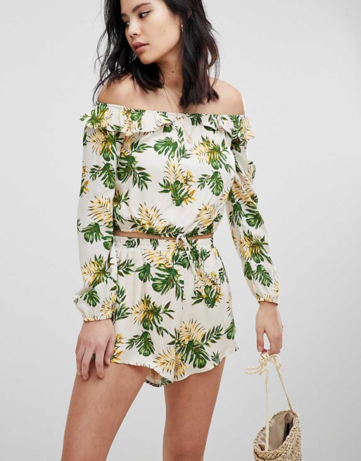Honey Punch Crop Top & Shorts With Ruffle Hem Co-Ord