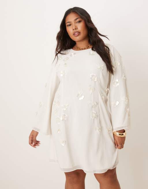 Hope & Ivy Plus embellished flare sleeve mini dress in white