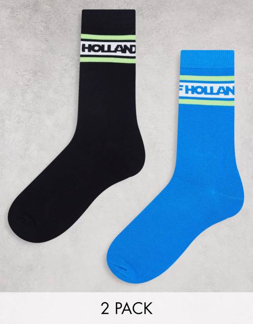 House of Holland two pack socks in black and blue