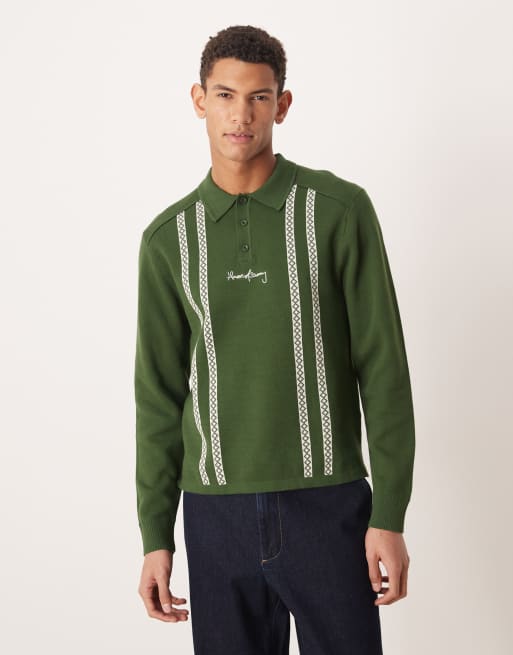 House of Sunny knitted stripe long sleeve rugby shirt in emerald