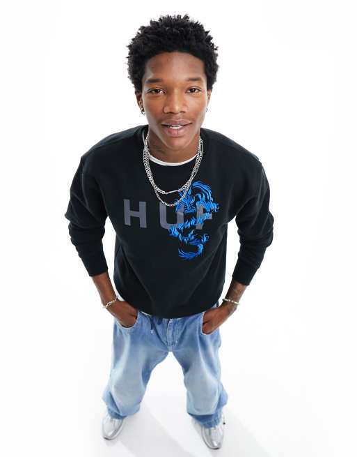 HUF dragon sweatshirt in black with chest print and embroidery (part of a set)