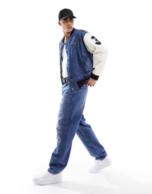 HUGO BLUE varsity bomber jacket in denim